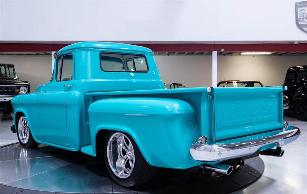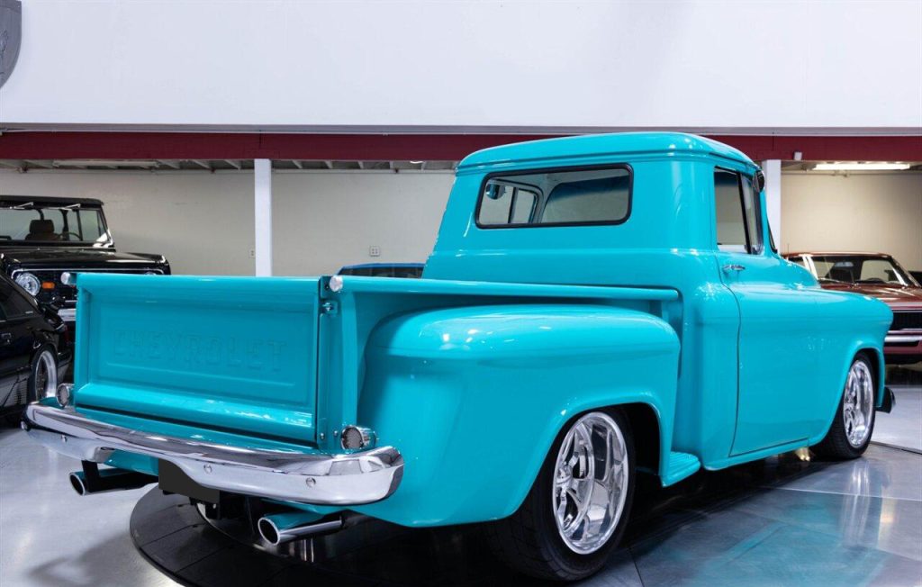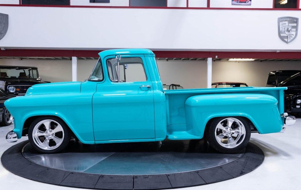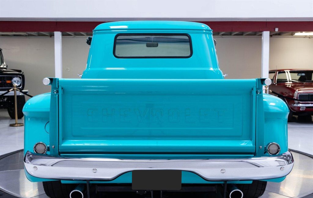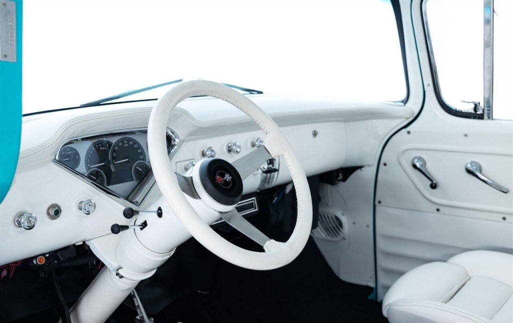 1957 Chevrolet 3100 Pickup in Turquoise over White Leather Interior. Equipped with a Corvette LT4 engine mated to a 6 Speed Manual Transmission. This frame-off nut and bolt restoration was built to the highest standard. Features include: TCI Mustang II Front Suspension w/ Power Assist Rack and Pinion Steering, Coilovers On All 4 Corners, TCI 4 Link, 9″ Rear End, Posi Traction w/ 3.90 Gears, 4 Wheel Disc Brakes, Fuel Injection, ZF Transmission, Budnik 18″ Fontana Wheels wrapped in Toyo Tires, Vintage Air A/C, VHX Gauges, Powder Coated Frame, Original Chrome Bumpers and Grill Restored to Show Quality and more! This stunning Truck is ready to be shown or driven.