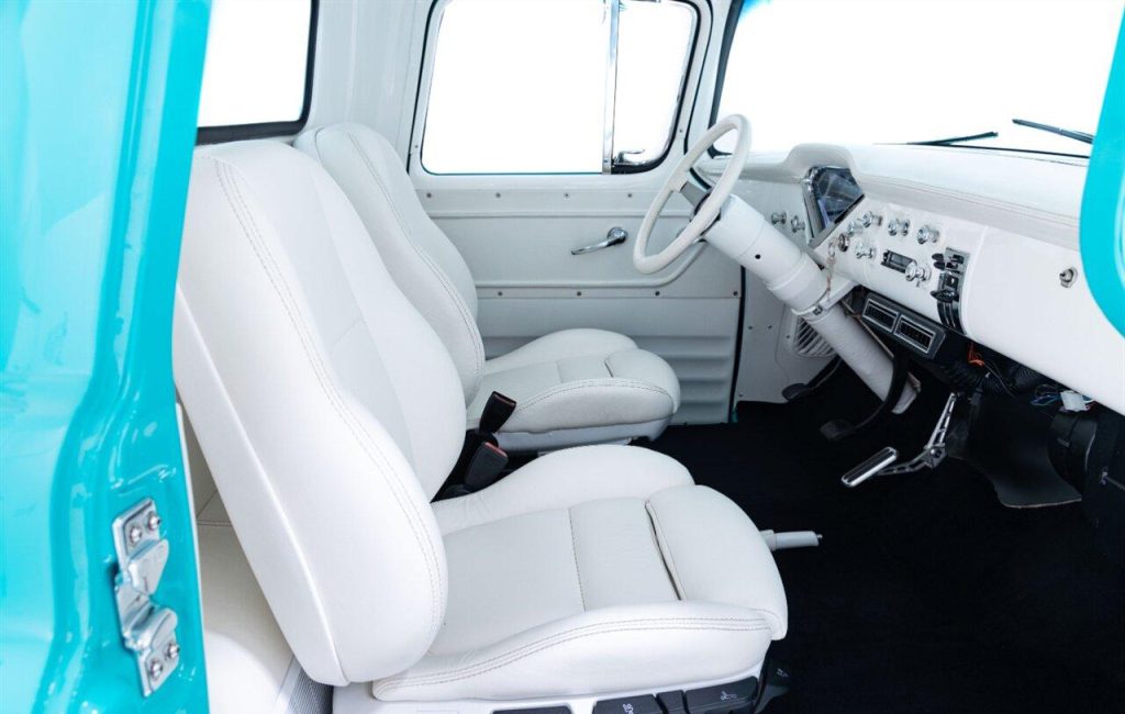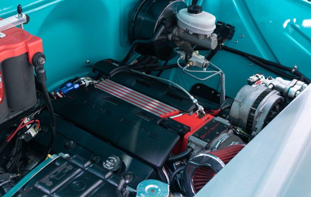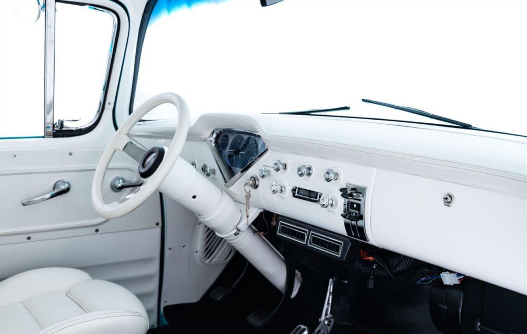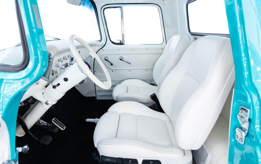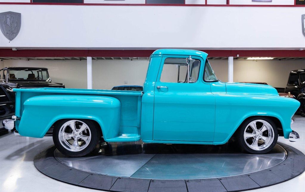 1957 Chevrolet 3100 Pickup in Turquoise over White Leather Interior. Equipped with a Corvette LT4 engine mated to a 6 Speed Manual Transmission. This frame-off nut and bolt restoration was built to the highest standard. Features include: TCI Mustang II Front Suspension w/ Power Assist Rack and Pinion Steering, Coilovers On All 4 Corners, TCI 4 Link, 9″ Rear End, Posi Traction w/ 3.90 Gears, 4 Wheel Disc Brakes, Fuel Injection, ZF Transmission, Budnik 18″ Fontana Wheels wrapped in Toyo Tires, Vintage Air A/C, VHX Gauges, Powder Coated Frame, Original Chrome Bumpers and Grill Restored to Show Quality and more! This stunning Truck is ready to be shown or driven.