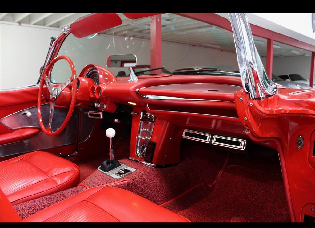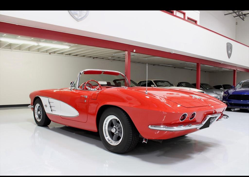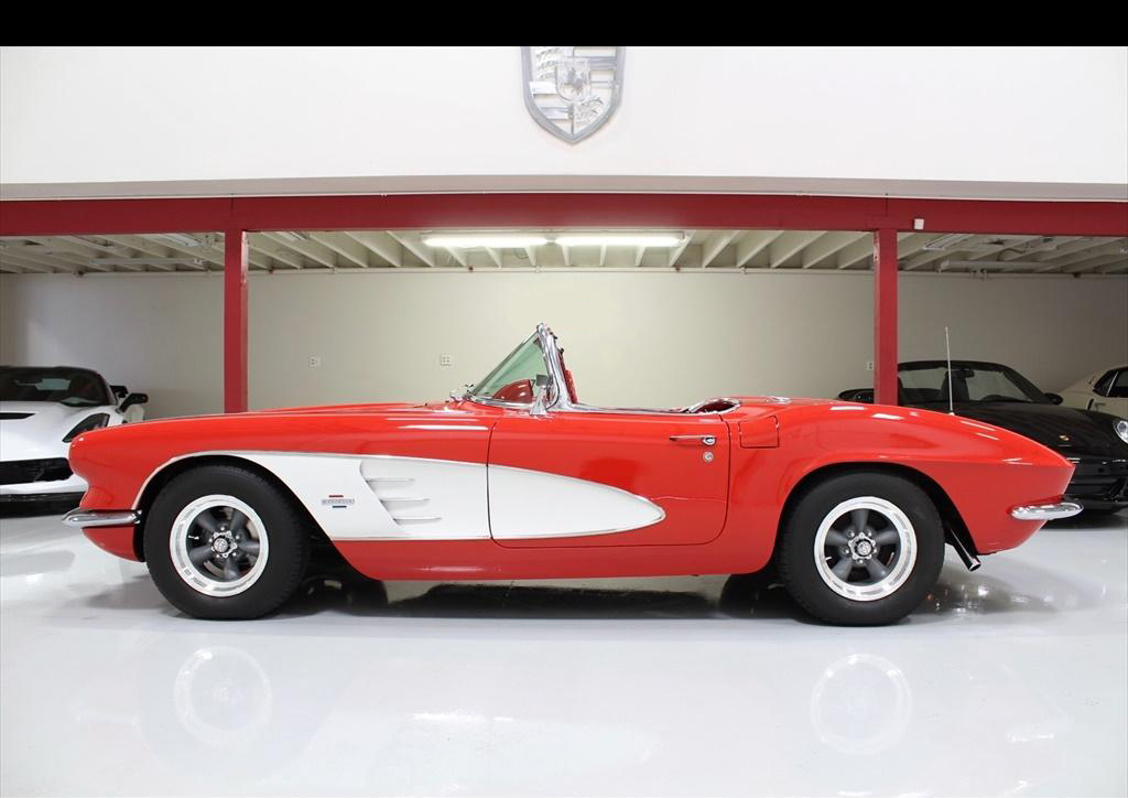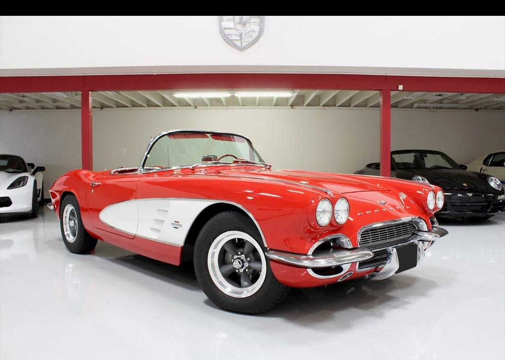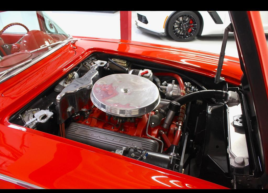 1961 Chevrolet Corvette in Roman Red over Red Interior. Equipped with a 327ci Engine mated to a Muncie 4-Speed Manual Transmission. Just 5k miles since restoration and rebuilt engine. Fresh paint job within the last 3 years. Brand new convertible top just installed. Vintage Air A/C blows cold. SSBC Disc brakes in the front. Aluminum radiator. Hurst shifter. AM/FM Radio, 6-Disc CD changer, and Sirius XM Radio. Two sets of wheels included; American Racing 15" wheels and stock…