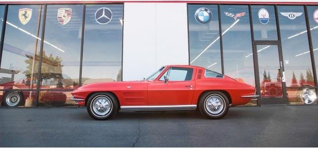 1964 Corvette Stingray Coupe in Original Riverside Red over Black leather Interior. CA Corvette with 327 Turbo Fire V8 Mated to Original Powerglide Automatic Transmission. Beautifully Preserved Interior. Options Include: Power Steering, Factory Original Delco AM/FM Stereo, Power windows, Cast Aluminum Knock-Off Hub Caps. Absolutely Everything Works on the Car even the Clock. This Stingray Runs Strong with No Issues at All.
