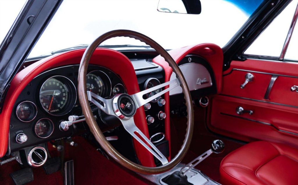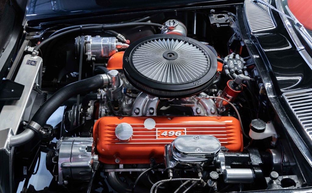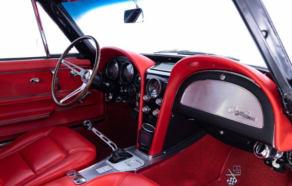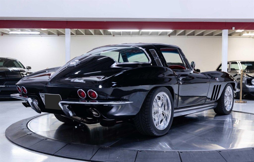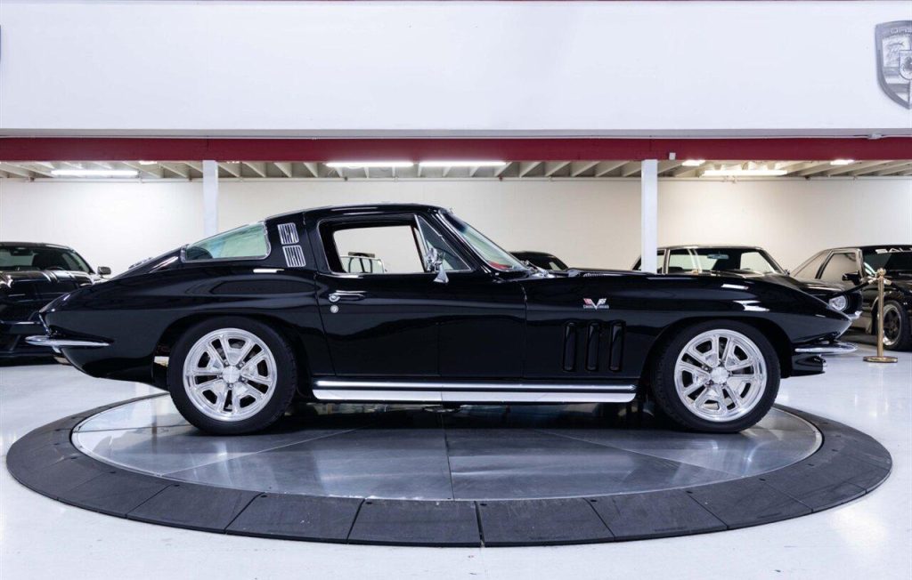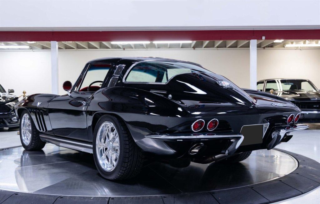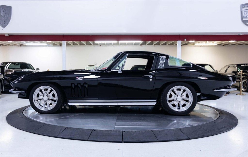 1965 Chevrolet Corvette Coupe in Raven Black over Red Interior. Equipped with a Fuel Injected 496ci Big Block Engine mated to a Tremec 5 Speed Manual Transmission. This incredible Pro Touring Corvette is a complete frame-off restoration. Features include: Holley Sniper Fuel Injection, Air Conditioning, Rack n Pinion Power Steering, 4 Wheel Wilwood Disc Brakes, Coilover Suspension, Ron Davis Aluminum Radiator, Sanderson Headers w/ Custom 3″ Stainless Exhaust, MSD Ignition, Rockford Fosgate Components and Subwoofer, Custom 17″ Wheels and more! This stunning Corvette is ready to be shown or driven.