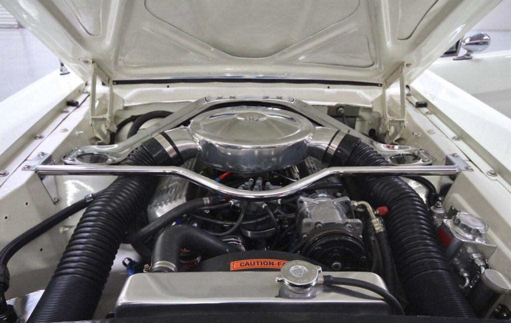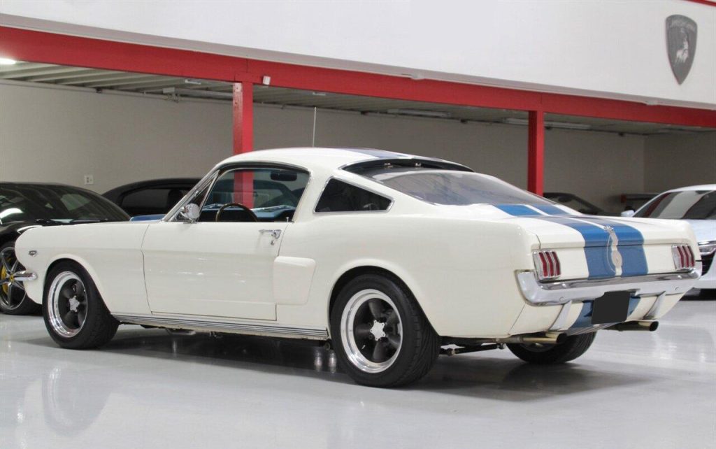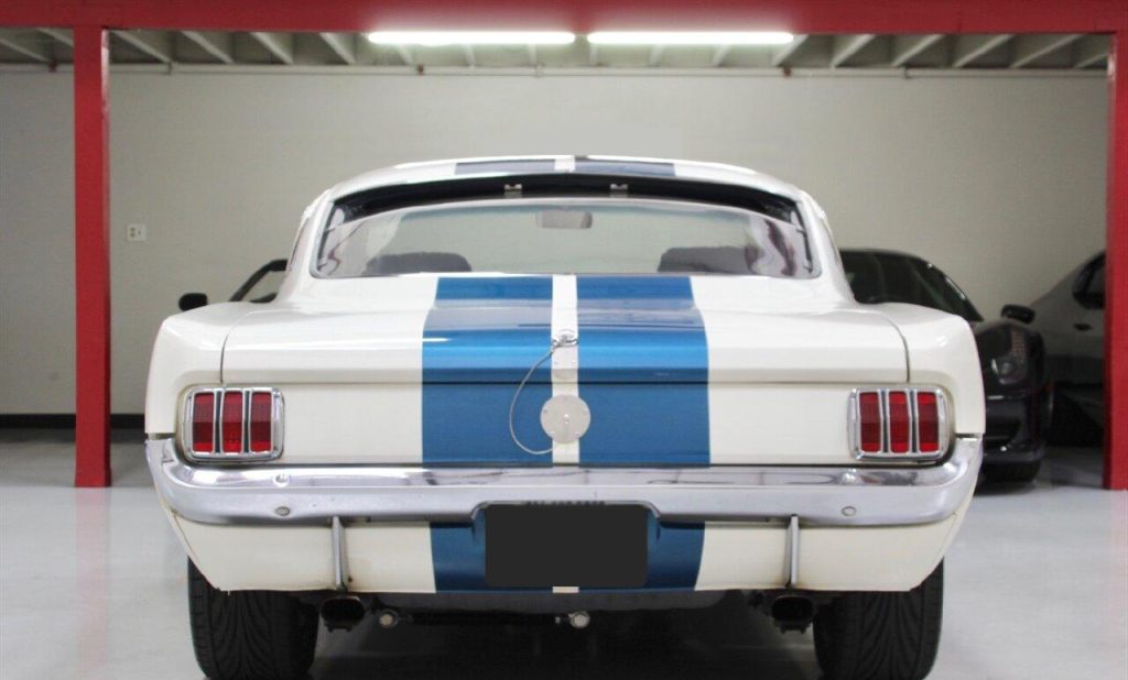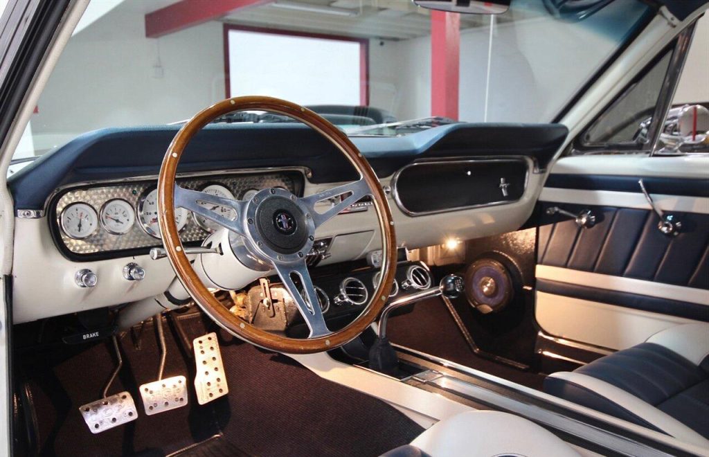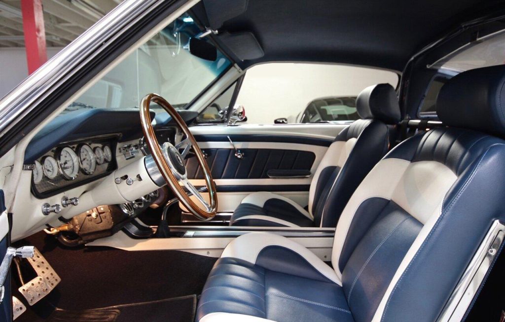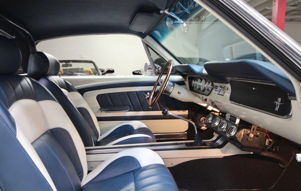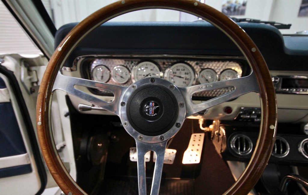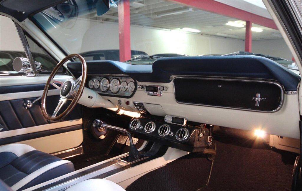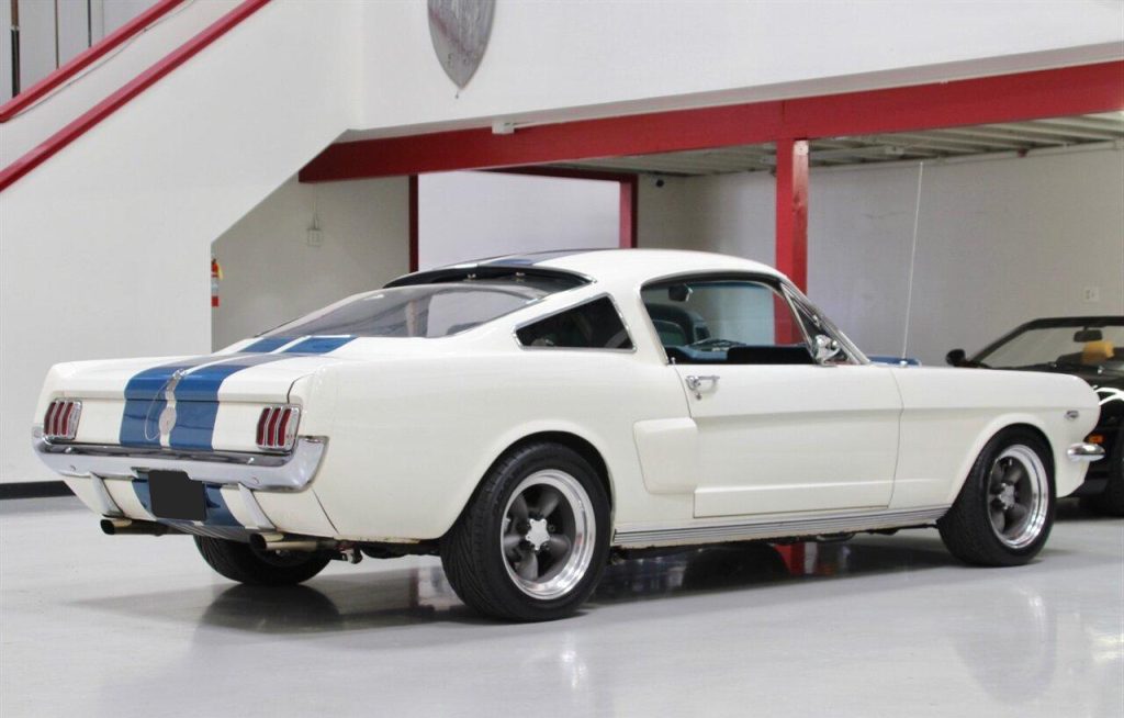 1965 Ford Mustang Fastback in White with Metallic Blue Stripes over Custom Blue / White Interior. Equipped with a 347ci V8 Engine mated to a Tremec 5-Speed Manual Transmission. This beautiful Fastback has seen less than 9k miles since complete restoration and engine build. The engine build, done by MCE Engines, features a stroker 347ci producing over 400 horsepower and torque, Ford Racing sportsman block, Probe forged reciprocating assembly, Probe forged pistons, Comp hydraulic roller cam, Trick Flow aluminum heads, Canton road racing oil pan, MSD distributor, McCleod aluminum flywheel, Aluminum driveshaft, and Hedman long tube headers with custom exhaust. Flaming River power rack & pinion steering, Power disc brakes (Wilwood in front, Baer in rear), TCP Coilover suspension in the front, Fays2 Watts-Link rear suspension system, TCP subframe connectors with X-brace, Ford 9″ Trac-Lok rear end, Vintage 16″ Torque Thrust wheels, Extended lug studs. The inside of the car features a custom upholstery, Vintage Air A/C & Heater, One-piece headliner, Flaming River tilt column, Shelby rear seat delete, 4-pt roll bar, Full size spare wheel & tire, Factory console, Shelby plexiglass rear windows, Shelby rear brake scoops (functional), Dynamat insulation, and Simpson 5-point racing harnesses. This excellent Mustang runs and drives as good is at looks, with an amazing exhaust note and plenty of power.