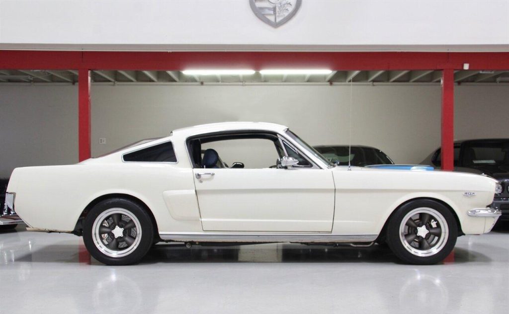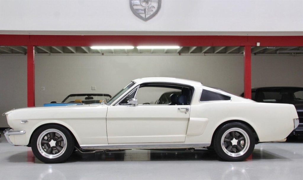 1965 Ford Mustang Fastback in White with Metallic Blue Stripes over Custom Blue / White Interior. Equipped with a 347ci V8 Engine mated to a Tremec 5-Speed Manual Transmission. This beautiful Fastback has seen less than 9k miles since complete restoration and engine build. The engine build, done by MCE Engines, features a stroker 347ci producing over 400 horsepower and torque, Ford Racing sportsman block, Probe forged reciprocating assembly, Probe forged pistons, Comp hydraulic roller cam, Trick Flow…