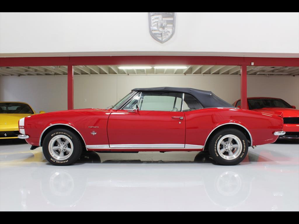 1967 Chevrolet Camaro RS/SS Convertible in Red over Parchment Deluxe Interior. Equipped with a 350ci ZZ4 Crate Engine mated to a Muncie 4-Speed Manual Transmission. This beautiful convertible is believed to be a 3 owner car that has never left California. Low miles on the ZZ4 engine. Thorley headers. Custom exhaust. Edelbrock 4bbl carburetor. Hurst shifter. 12-Bolt rear end. Power steering. Power disc brakes. Power convertible top in excellent condition. Bucket seat interior with console. Tilt steering column. AM/FM radio with CD changer. Hideaway headlights. American Racing 15″ wheels wrapped in BF Goodrich Radial T/A tires. This Camaro runs and drives as good as it looks, ready for your local car show or a cruise down the coast.