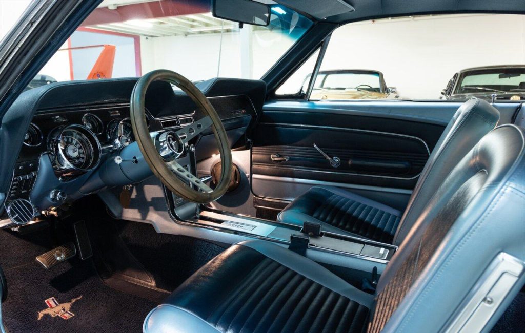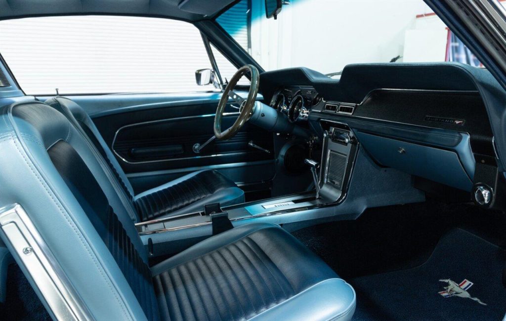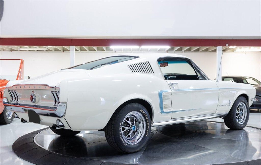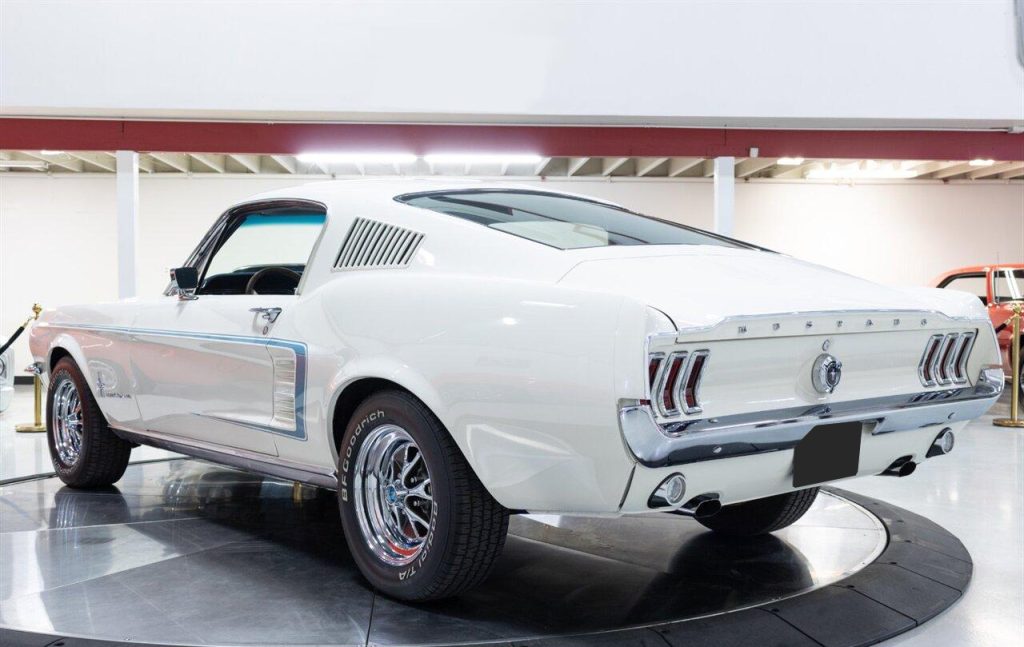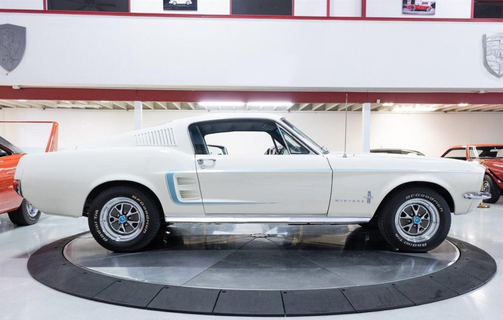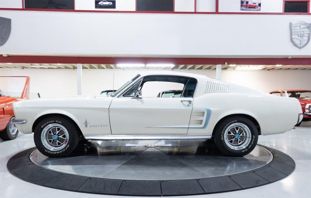 1967 Ford Mustang Fastback in Wimbledon White over Blue Vinyl Interior. Equipped with a 289ci V8 mated to a C-4 Automatic Transmission. This Fastback has undergone a complete restoration back to its original factory specifications. It was equipped from the factory with: A/C SelectAire, Power Steering, Tilt Steering, Heavy Duty Suspension, Deluxe Seat Belts, Sport Deck Rear Seat, Center Console and more. Features include: a Retro Radio w/ Bluetooth functionality, Vintage Air A/C, Factory Style Steel Wheels and more! A Marti Report is included with the sale. This Mustang is ready to be shown or driven.