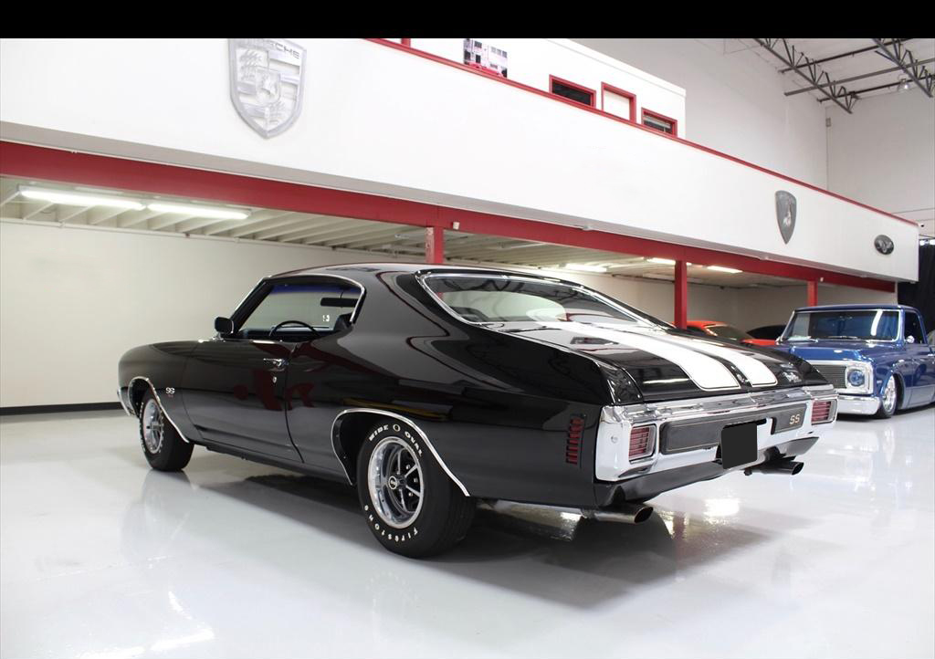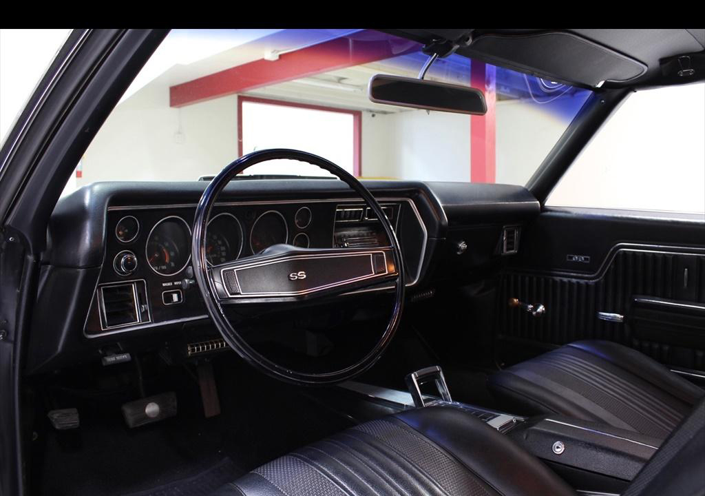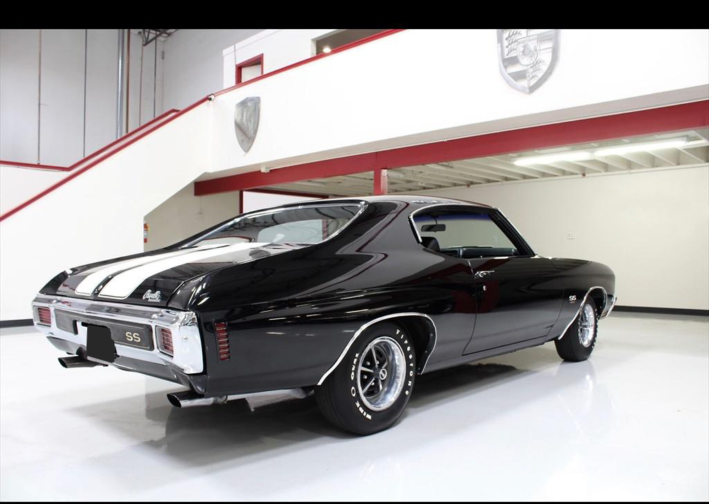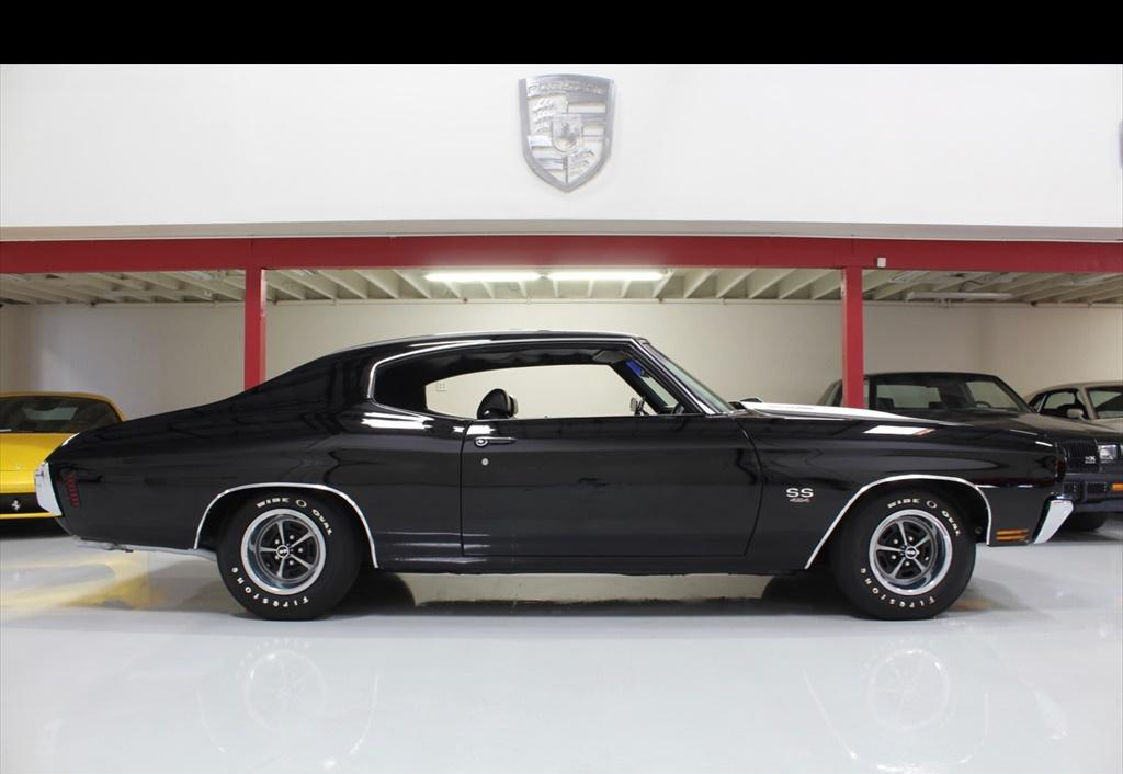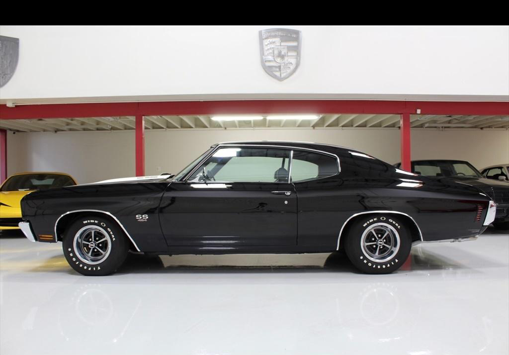 1970 Chevrolet Chevelle Super Sport in Tuxedo Black over Black Interior. Equipped with a 454ci V8 Engine mated to a Turbo 400 Automatic Transmission. This beautiful SS has been repainted once in it's original color. The car is believed to be an original LS5 car, but is now powered by a Warranty replacement CE block. Mileage on the odometer is believed to be original to the car. This was a highly optioned car with Factory Air Conditioning, Power…