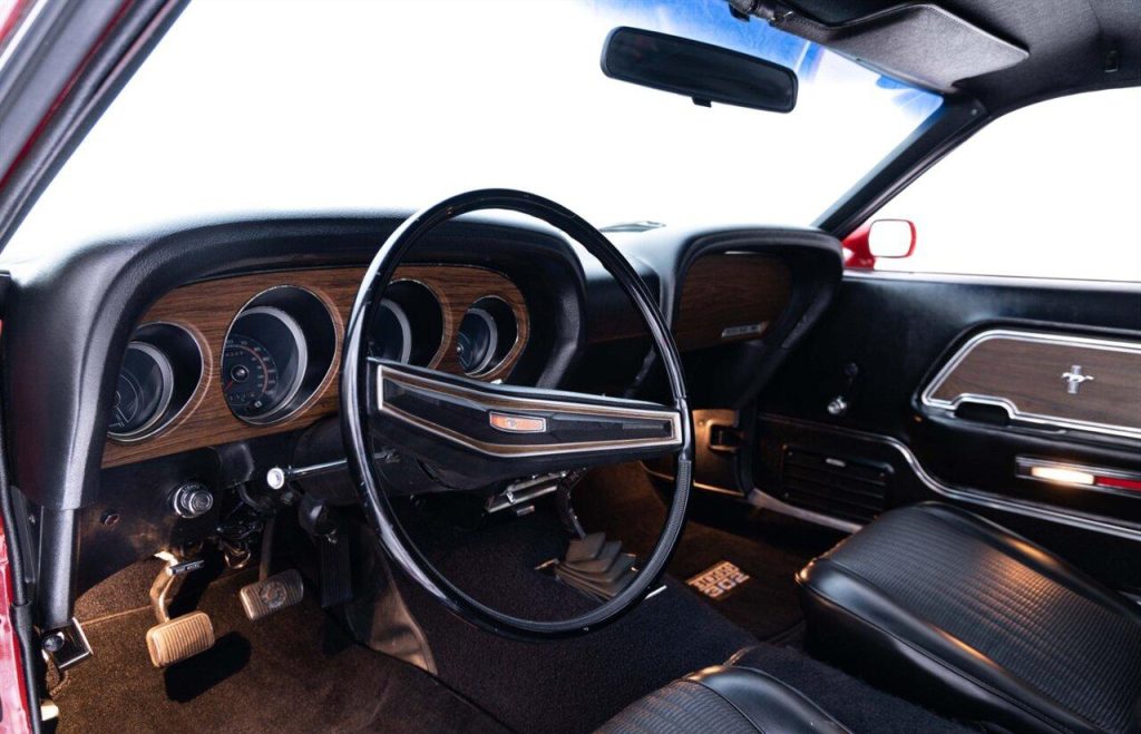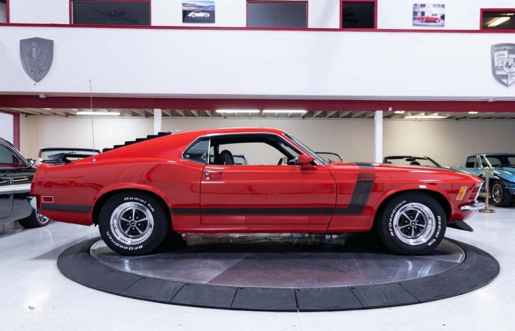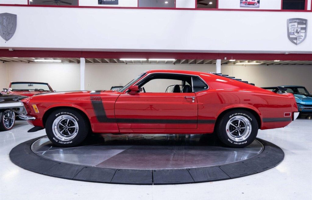 1970 Ford Mustang Boss 302 in Red over Black Interior. Equipped with a 302ci V8 Engine mated to a 4-Speed Manual Transmission. Features include: Power Steering, AM/FM Radio, Traction-Lok Rear End, Tachometer, Rare Non-Shaker Hood, Sport Deck Rear Seat, Decour Group and more! Sale includes a Marti Report! This stunning Boss 302 is ready to be driven and enjoyed!